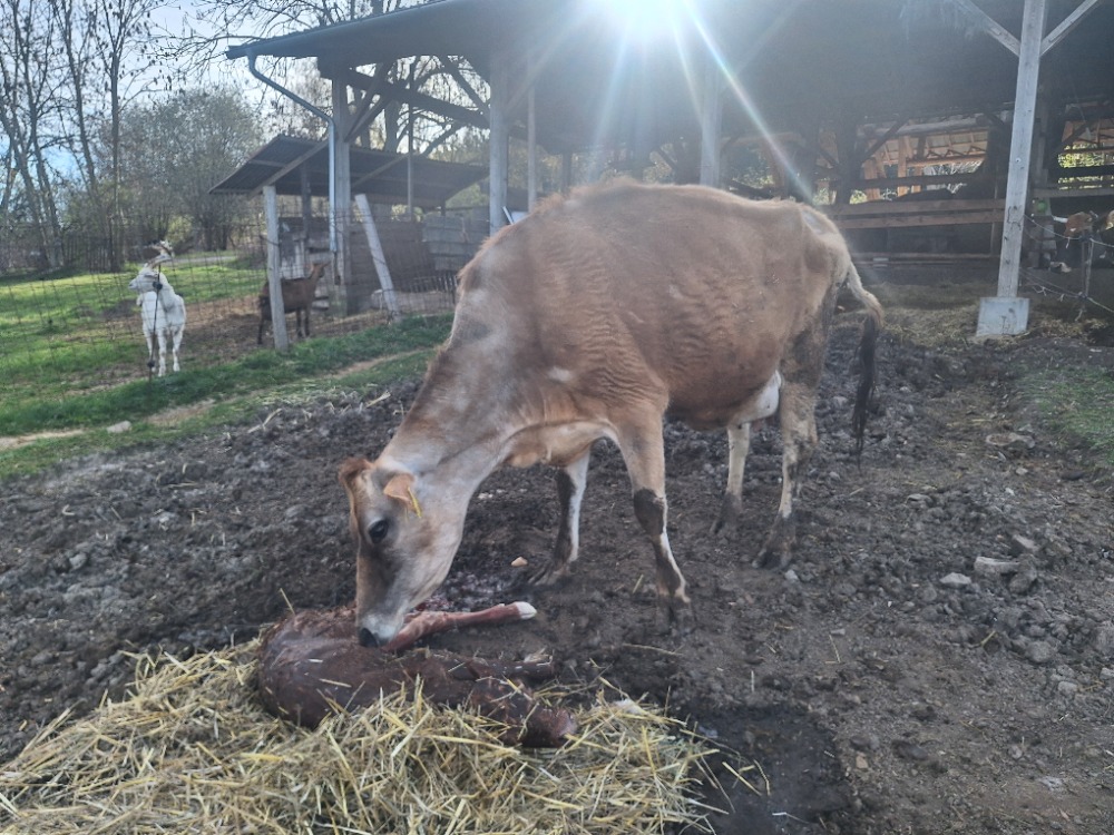 I když to na konci videa vypadá s telátkem dramaticky (natáčení videa jsem zastavila a běžela jsem pomáhat), telátko za chvilku začalo dýchat a za pár minut už se zkoušelo postavit. Ale v tu chvíli kdy se nehýbalo, jsme se opravdu báli.