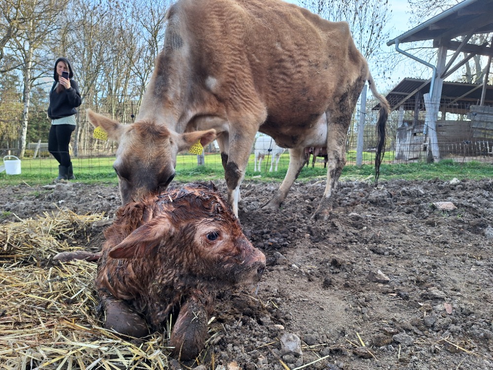 Dnes ráno porodila naše kravička Jasmínka telátko. Na porod jsme čekali víc než 10 dní po termínu a už jsme byli opravdu velmi napjatí.
